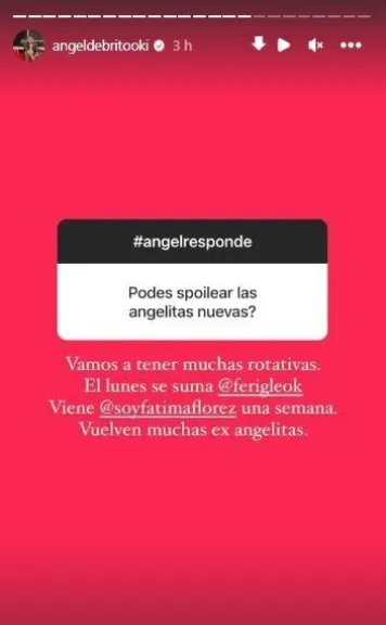 Desde la semana pasada, que fue cuando dicha noticia impactó en los televidentes, han surgido especulaciones sobre las posibles incorporaciones que ocuparán sus puestos, y por eso Ángel fue consultado sobre si «podía spoilear las angelitas nuevas».
