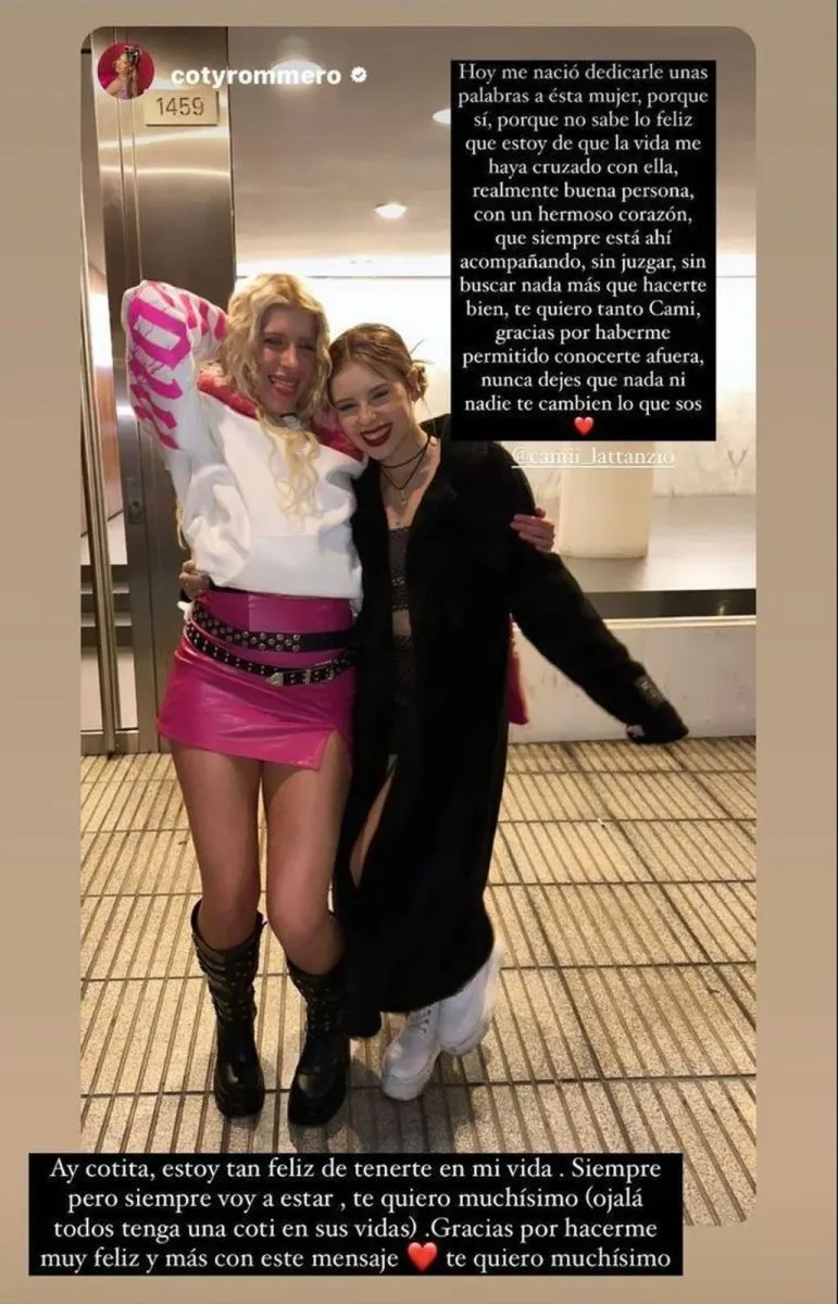 En un período complicado en cuanto a la salud mental de Coti Romero, Camila Lattanzio sorprendió al hacer pública su estrecha amistad. Esta revelación subraya la importancia que Camila tiene en la vida de Coti en este momento desafiante.