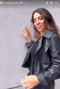Cinthia Fernández compartió su set de tres piezas en las que se destacaron su campera y su pantalón babucha en eco cuero. La panelista le dio al negro un estilo chic con mucha fuerza y marketinero.
