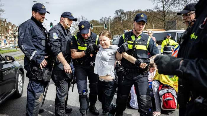 La activista climática Greta Thunberg fue detenida por la policía neerlandesa este sábado durante una protesta en La Haya contra las subvenciones a los combustibles fósiles.