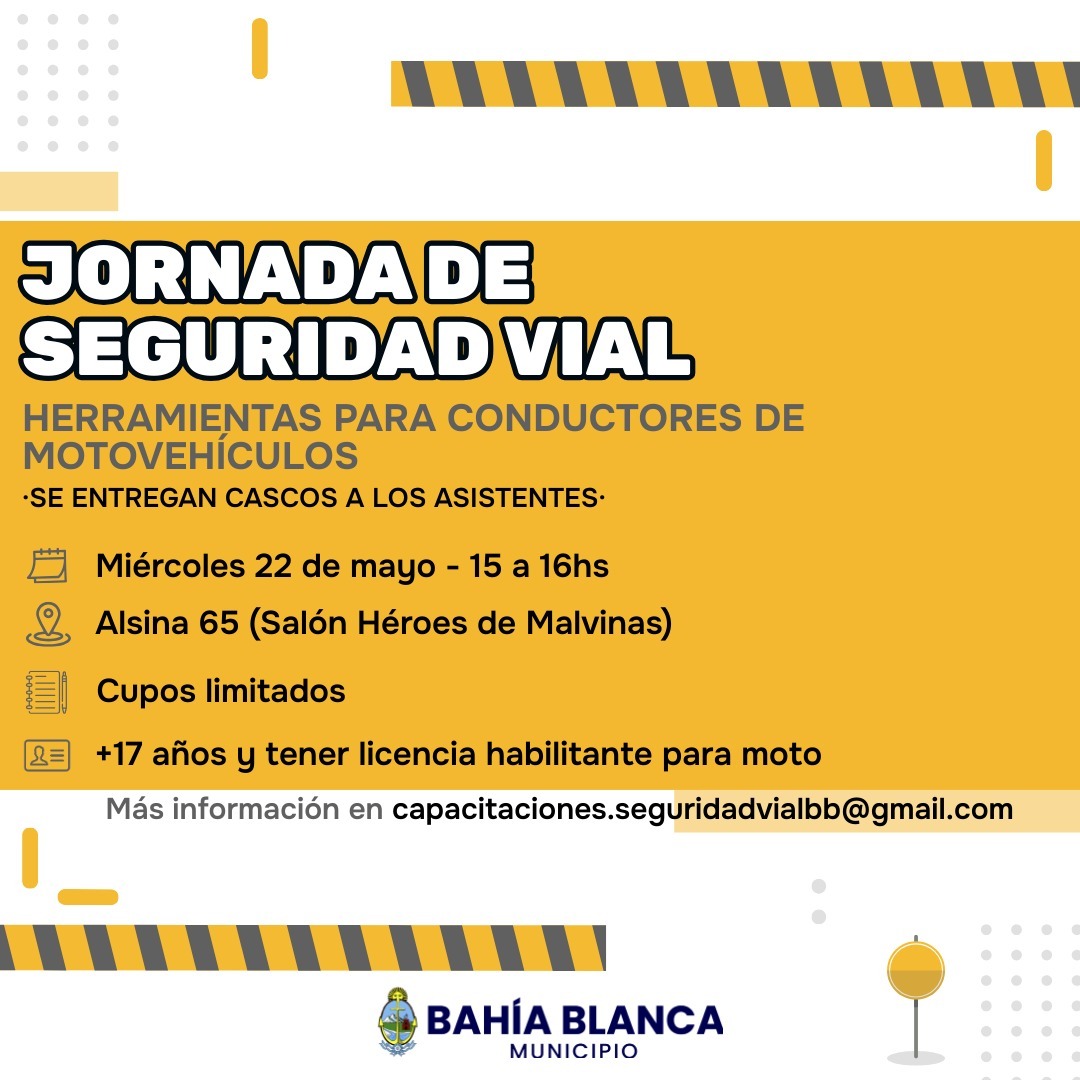 A partir de las 15 hs en el salón Héroes de Malvinas (Alsina 65) se realizará una capacitación orientada a conductores de motovehículos para concientizar sobre el uso correcto de herramientas de protección como el casco, requisitos para circular y consejos sobre elementos básicos de seguridad.