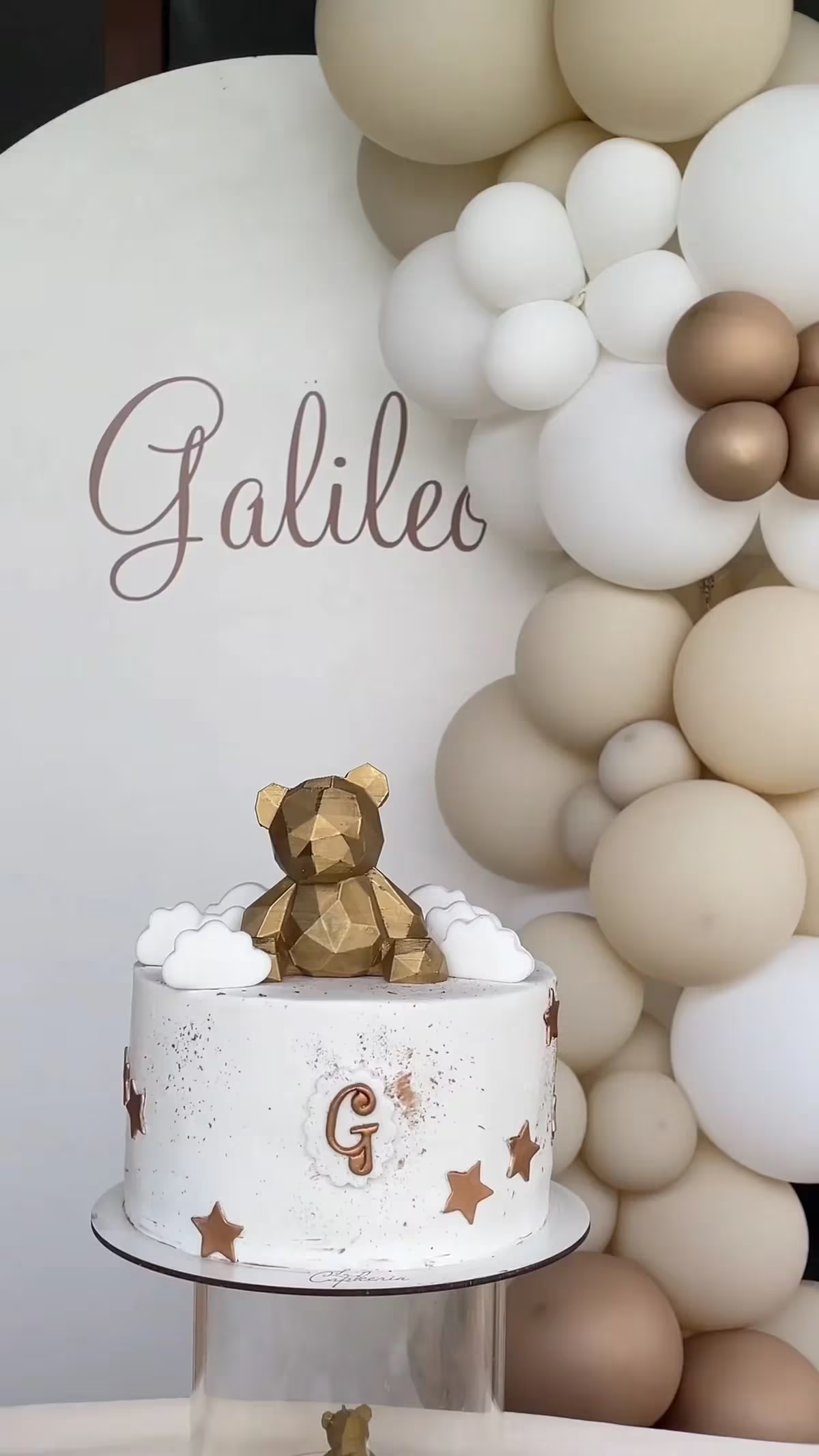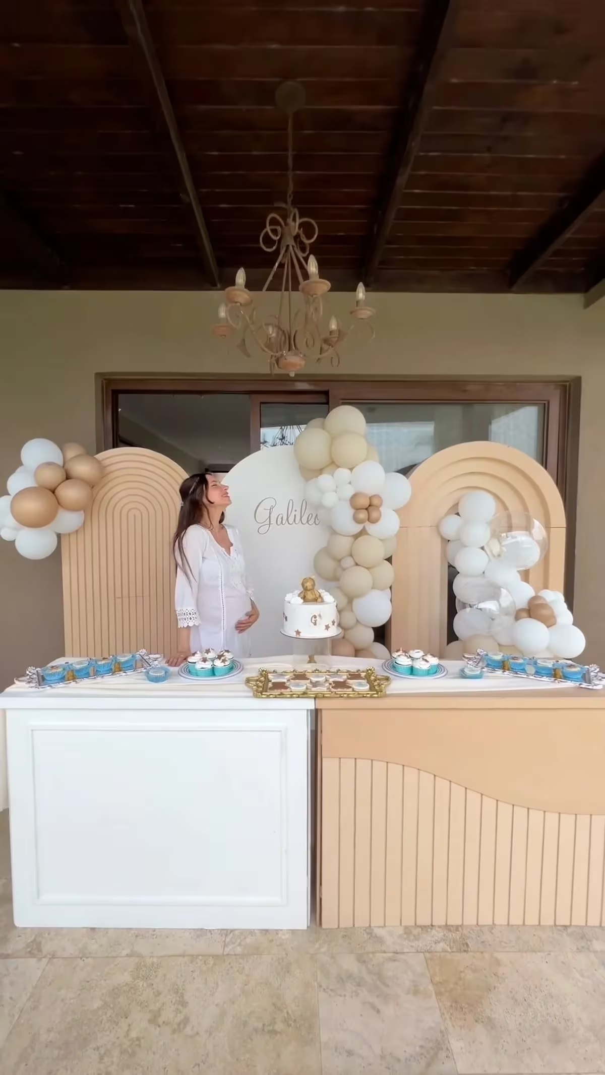 El video comienza con un cartel de recibida en el que se lee “Bienvenidos al baby shower de Galileo”. El nombre del bebé estaba escrito en una letra distinta y tenía un osito de decoración junto con unas flores sobre el cuadro. Magui se emocionó hasta las lágrimas y abrazó a cada una de sus amigas por todo lo que habían armado para ella y su bebé.