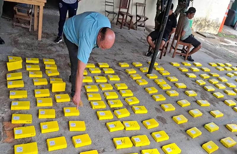 El pesaje preliminar arrojó un total de 155,6 kilogramos de cocaína compactada en “ladrillos” estampados con la figura en bajorrelieve de un delfín, usualmente asociada a organizaciones narcocriminales.