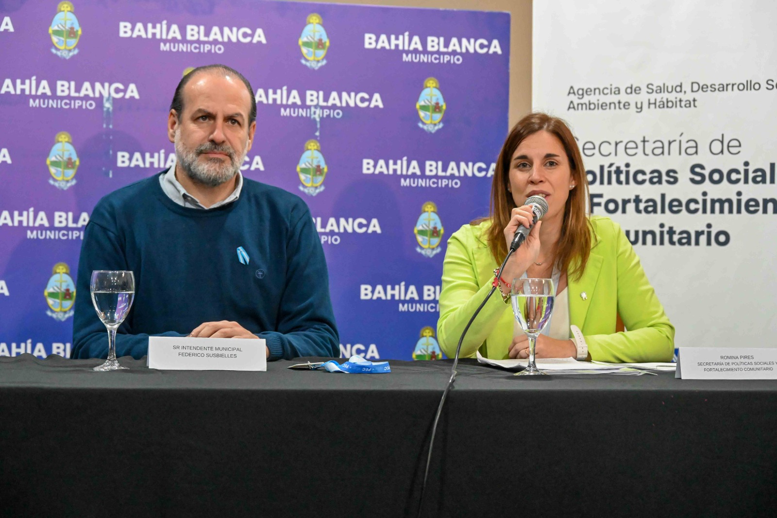 El intendente Federico Susbielles, acompañado por el director de la Agencia de Salud, Desarrollo Social, Ambiente y Hábitat, Diego Palomo y la secretaria de Políticas Sociales y Fortalecimiento Comunitario, Romina Pires, brindaron detalles de cada propuesta.