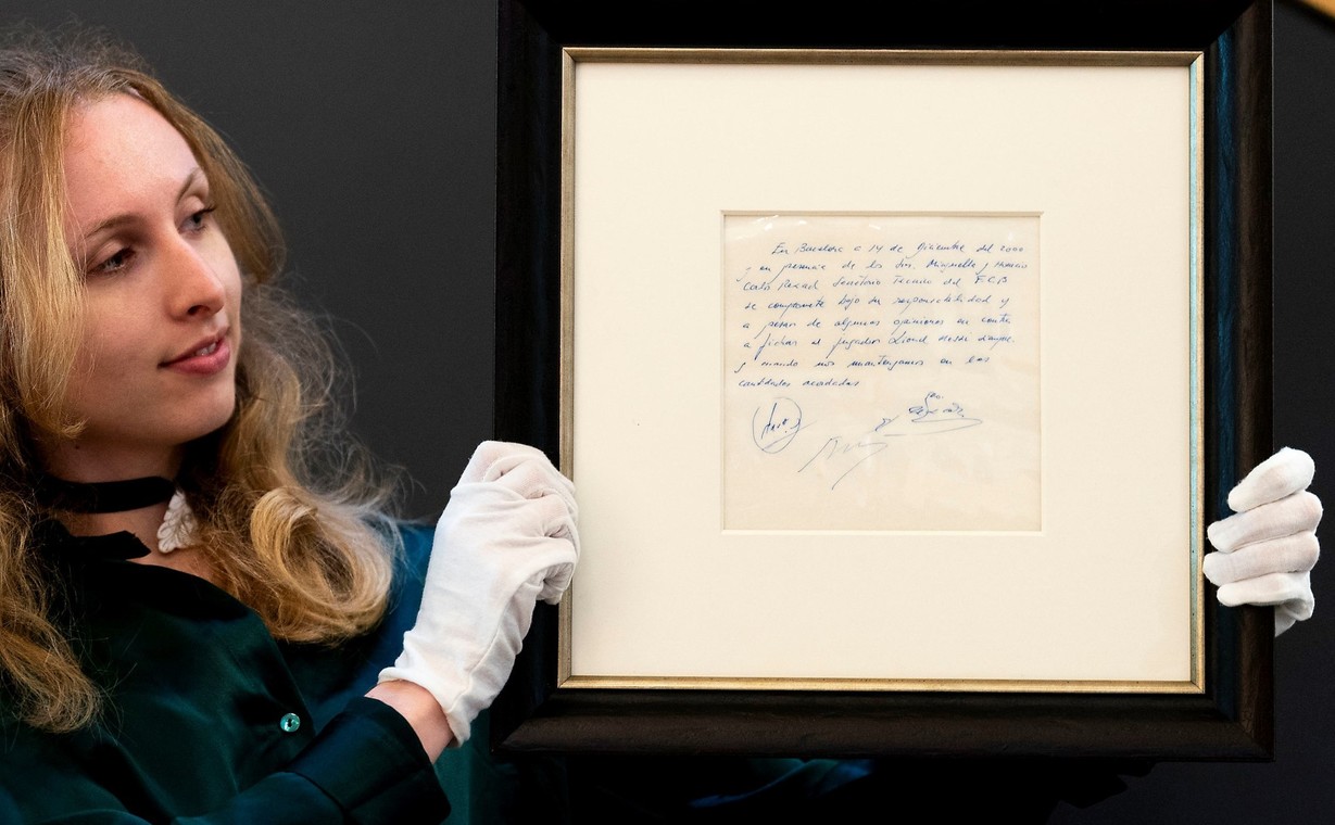 “Uno de los documentos más importantes en la historia del fútbol, la famosa y única servilleta en la que se escribió la primera promesa de un contrato para asegurar a Lionel Messi, de 13 años, para el FC Barcelona, se vendió por £762.000 en Bonhams en una subasta en línea. Venta que finalizó hoy (17 de mayo de 2024). El precio inicial fue de £300.000″, expresó Bonhams.