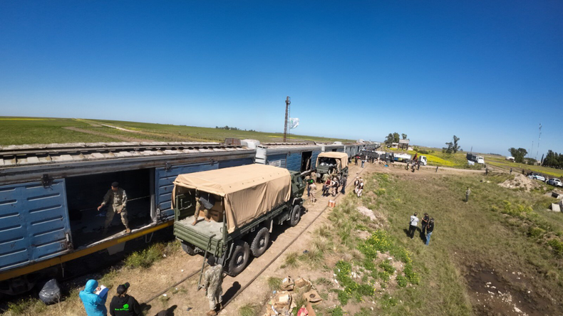 Por otra parte, desde el Ministerio de Defensa informaron que la Armada arribó con «camiones y personal para recibir el Tren Solidario y trasladar su carga a Bahía Blanca».
